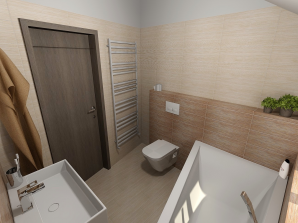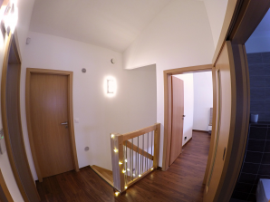 - laminátová podlaha nebo koberec v obytných místnostech a na chodbě v podkroví, v ostatních místnostech dlažba